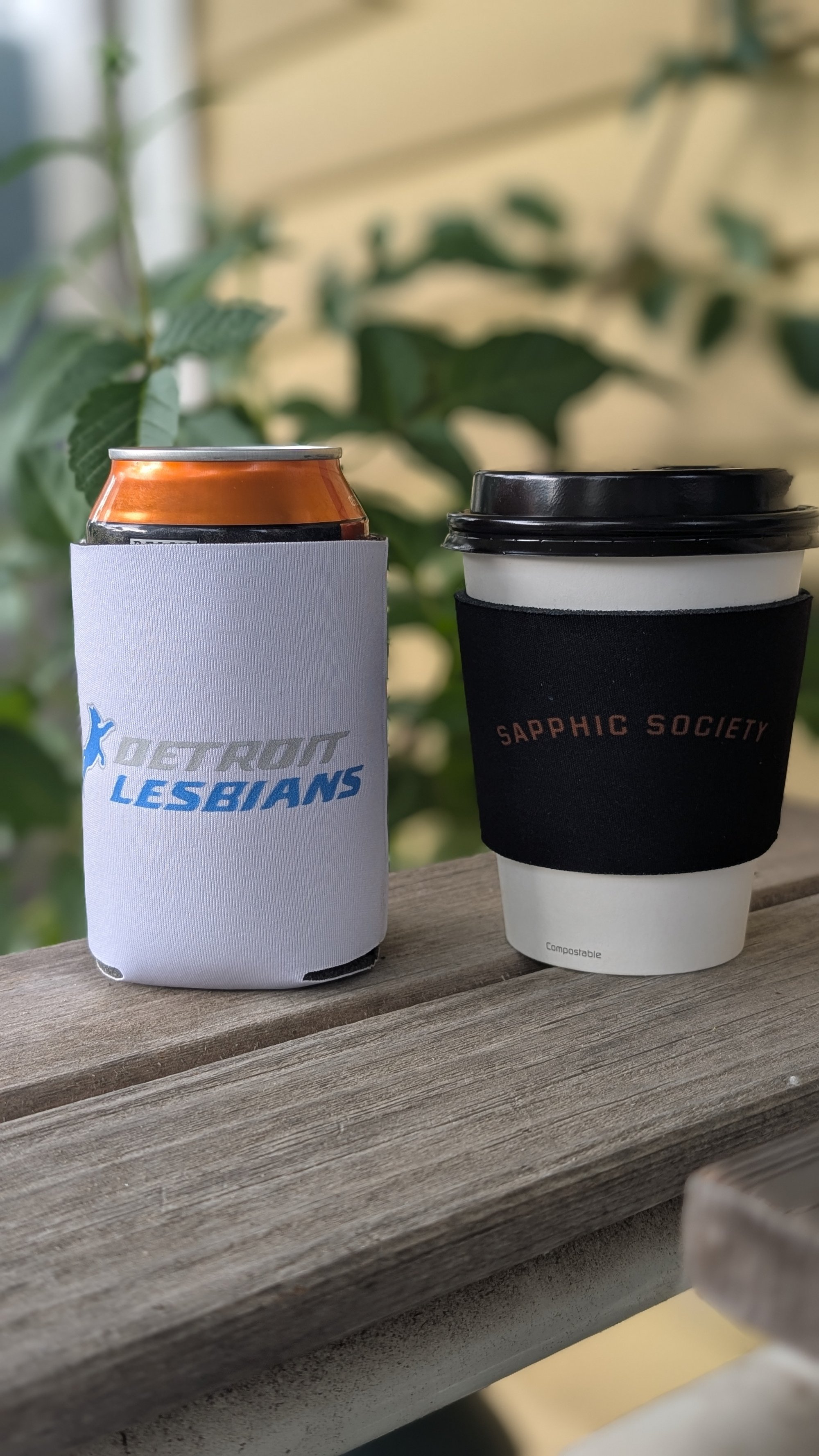 Keep your beer nice and cold with this Detroit Lesbians reusable koozie /cozie!