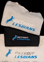 Detroit Lions lookalike Hoodie with my original queer design for the Detroit Lesbians sportsball fans.